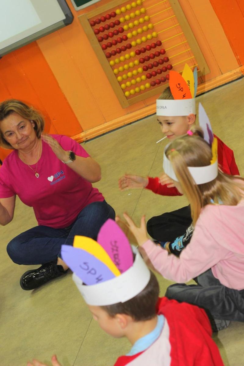 A potem przedszkolaki w podróż po SP4 zabrali uczniowie i nauczyciele naszej szkoły. Były doświadczenia chemiczne i zabawy matematyczne, zajęcia plastyczne, zagadki biologiczne, pląsy i zabawy kreatywne